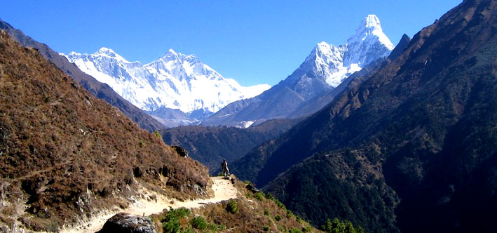descending from Tangboche towards the river bed